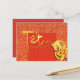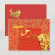 Golden Horse Schnitt Stilbild mit dem goldenen "Têt" Text in vietnamesisch: "tet tet et đet xuân vét" bedeutet "Têt kommt, Frühlingsrückkehr" auf dekoriertem rotem Hintergrund. Design auf horizontaler Postkarte mit Texten, die rückseitig angepasst werden sollen. Passende Grußkarte und roter Umschlag von Li XI A7. Perfekt für das vietnamesische Neujahr des Pferdes 2026.