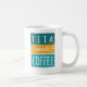Teta benötigt Kaffee-Tasse. Diese niedliche Kaffee-Tasse ist das ideale Geschenk für jede Großmutter, deren Enkel sie Teta statt Oma nennen. (Teta bedeutet Großmutter oder Großmutter auf Arabisch.) Diese lustige Tasse sagt: "Teta braucht Kaffee." Es hat einen weißen Hintergrund mit aquamarin / türkis / aqua und gelb Grafik.