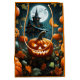 Böser Kürbis mit der schwarzen Burg unter dem Mondlicht. Ideal, um Geschenke zu verschenken.