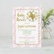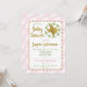 Ein Texas Staat Mädchen Baby Dusche Einladung. In rosa, dicken Streifen mit einem goldenen Staat Emblem und Blumenkranz.