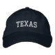 Eine einfache anpassbare Cap bestickt mit dem (anpassbaren) Text Texas. . Wählen Sie Hut und Textfarbe und Stil Ihrer Wahl aus.