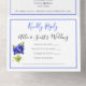 Mit dieser eleganten Bluebonnet Bluebonnet-Einladung laden Sie Familie und Freunde zu Ihrer Hochzeit ein. Es bietet einen nahen Blick auf die bluebonnet-Blume und ein elegantes Drehbuch mit blauen Akzenten. Personalisieren Sie diese durch Hinzufügen von Namen, Datum, Uhrzeit, Veranstaltungsort und anderen Veranstaltungsdetails auf der Rückseite. Die Bluebonnet Bluebonnet Blumen Hochzeit ist perfekt für Texas Frühjahr und Sommer Hochzeiten.