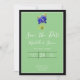 Mit dieser eleganten Frühjahrssaison, Texas Bluebonnet, laden Sie Familie und Freunde zu Ihrer Hochzeit ein. Es zeichnet sich durch ein einfaches Design mit bluebonnet-Blume, elegantes Drehbuch mit schwarz-weißen Akzenten aus. Personalisieren Sie diese durch Hinzufügen von Namen, Datum, Uhrzeit, Veranstaltungsort und anderen Veranstaltungsdetails auf der Rückseite. Die Bluebonnet Bluebonnet Hochzeitsfarben sind perfekt für Frühjahr- und Sommerhochzeiten.