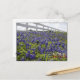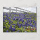 Feld von Texas Bluebonnets entlang eines weißen Zaunes