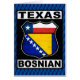 Klassisches Design der US-Route mit dem Text TEXAS BOSNIAN und den Flaggen des Staat von Texas und Bosnien-Herzegowina.