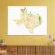 Texas Cactus Watercolor Illustration Map Leinwanddruck