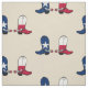 Dieser Stoff hat Cowboystiefel mit Sporen und die Texas-Fahne, die darin entworfen wurde. Die Hintergrundfarbe dieses Stoffes kann mit der Schaltfläche und dem Farbwähler nach Maß auf eine beliebige Farbe geändert werden. Dieses Design ist auch für andere Artikel im Rodeo-Tage-Shop erhältlich.