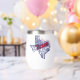 Spaß Reise Wein Taumeldesign Features Texas Staat Silhouette mit handgezeichnet Blume Doodles füllen, und "Zuhause Sweet Zuhause" Text.