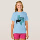 Eine grunge-grafische Gestaltung einer Texas-Landkarte und ein Cowgirl auf dem Pferd von Künstler/Designer Charmaine Paulson auf einem T - Shirt.
