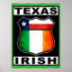 Texas Irish American Poster Print. Texas irisches Design, im Stil eines coolen amerikanischen Road Route Schildes. Der Text Texas Irish ist oben und unten, mit der Flagge des Staat von Texas und der Flagge der Republik Irland im Zeichen der Route. Ideal für Texaner irischer Abstammung und für Ex-Pats im Lone Star Staat.