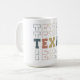 Das Wort Texas in gedämpften Farben auf einem weißen Hintergrund.