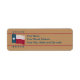 Zeigen Sie Ihre Liebe und Stolz von Texas überall mit diesen Rücksendeadressen-Aufklebern auf Ihrer E-Mail oder verwenden Sie zur Identifizierung für Bücher und andere Artikel. Diese Etiketten enthalten die Texas Lone Star Flag mit roten Grenzlinien, die über das Label gehen. Navy blaue Teere sind über und unter der schwenkbaren Fahne. Einfach mit Ihrem Namen, Adresse, Stadt, Staat und Postleitzahl anpassen. Jeder wird wissen, wo Ihr Herz lebt - Texas und Texas stolz.