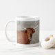 Bilder von Cowboys, die Rinder herden, erinnern an dieses Foto einer texanischen Longhornkuh. Sie hat ihren Kopf aus dem Weiden gehoben und leckt ihre Nase neugierig und starrt neugierig, während sie auf dem Trockenrasen stehend ist. Eine großartige Tasse für jeden, der ein Western-Thema von einem Cowboy zu einem Ranger Liebe, zu diesem urbanen Cowboy, der sich nach draußen sehnt auf einem Rinderwahnsinn, der unter dem Sternenhimmel schläft. Tierfreunde aller Art werden auch die seltsame Kuh schätzen. Sie ist bezaubernd.