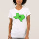 Vor diesem Shirt: Der Staat von Texas mit einem Häkchen innen. Das Rückseite dieses Shirts: Text sagt: "Texas Lyme Disease Awareness" Mit einem Foto von Cowboys Stiefeln mit Lyme Disease Awareness Band auf ihnen.