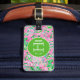 Texas Map Pink & Green Preppy Muster Mit Monogramm Gepäckanhänger