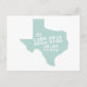 Mit der Kontur Silhouette Kartenform des großen und wunderschönen Staat von Texas gefüllt mit einem soliden hellgrünen Hintergrund und dem Spitznamen "The Lone Star Staat", der vorne geschrieben wurde, ist diese Postkarte eine großartige Idee, um jedem im Lone Star Staat eine persönliche Handschrift zu schicken.