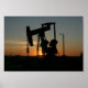 Fotografie einer Ölpumpe, die vom Himmel bei Sonnenuntergang im ländlichen Texas verschleiert wurde.