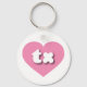 Diese Schlüsselkette verfügt über ein rosa Herz, das die fett-, weiß-, abgerundeten Kleinbuchstaben tx enthält, eine spielerische Abkürzung für Texas, den einsamen Star-Staat.