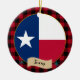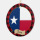 Ornamente: Rustikales Texas dekoratives Ornament mit Texas Fahne umgeben von roten und schwarzen Büffel karierte Muster - Liebe mein Land, Weihnachtsdekoration, nationale Patrioten / Sportfans