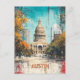 Diese Reise-Postkarte, in digitaler Illustration, wird von der Staat Hauptstadt Texas in Austin - USA inspiriert.