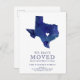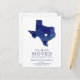 senden Sie Ihre neue Adresse an Freunde und Familie mit dieser modernen marineblauen Aquarellkarte des Staat von Texas mit moderner Typografie. Perfekte bewegende Ankündigung. Bewegen Sie das Herz um zu Ihrem Standort.