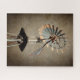 Ein grafisches Bild von Texas Pride, mit einer ikonischen Windpumpe, oder Windmühle, wie sie auf vielen Ranch-Ländern zu sehen sind. Dieses ikonische Bild ist vor einem strukturierten sepia-farbenen Hintergrund für den authentischen antiken Look.