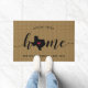 Zeigen Sie Zuhause-Staatsstolz mit dieser benutzerdefinierten Türmatte mit "Zuhause" in Kalligrafieschrift mit einer Silhouette des Staat von Texas, stehend für den Buchstaben "O". Eine Herzillustrierung in der Staat-Karte vervollständigt das Design; Sie können die Herzposition in Ihrer Zuhause-Stadt ändern, indem Sie das Designwerkzeug öffnen und die Herzform an Ihren bevorzugten Ort ziehen. Personalisieren Sie mit Ihrer Zuhause Stadt, Familienname und Jahr etabliert, um eine perfekte Touch für Ihre Haustür zu schaffen, oder ein unvergessliches Hauswärmeschenk.