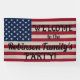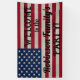 US Patriotic American Flag auf einem simulierten Leinenstoff mit US Flagge, rot-weiß-blau, und Text. Der kalligrafische Text ist anpassbar.