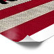 US Patriotic American Flag auf einem simulierten Leinenstoff mit US Flagge, rot-weiß-blau, und Text. Der kalligrafische Text ist anpassbar.