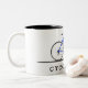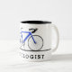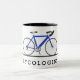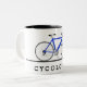 Text des Radfahrers mit blauem Fahrrad Zweifarbige Tasse