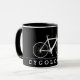 Text des Radfahrers mit weißem Fahrrad Tasse