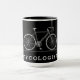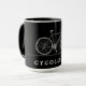 Text des Zykologen mit grauem Fahrrad Tasse