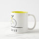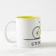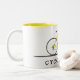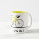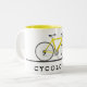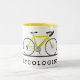 Text des Zykologen und gelbes Fahrrad Zweifarbige Tasse