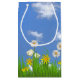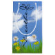 atmen Sie Textgrafik in grünem Gras und Blume mit Himmelshintergrund