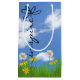 Textgrafik in Grüngras und Blume mit Himmelshintergrund inspiriert