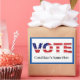 VOTE Text gefüllt mit Flag Farben mit einem blauen Rand. Geben Sie den Namen Ihres Kandidaten in den angegebenen Platz ein. Unterscheidend.