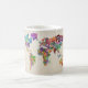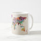 Eine typografische Textkarte der Welt im urbanen Aquarellstil. Jedes Land wird durch seinen Namen repräsentiert, der so gestaltet ist, dass er in das geographisch korrekte Gebiet passt. Fast alle Länder sind vertreten und erwarten von einigen der sehr kleineren Inseln im Pazifik und in der Karibik.