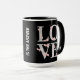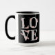 Weiße abgeschiedene LIEBE mit rosa Federn auf schwarzem Hintergrund