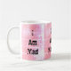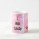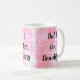 Weiße Kaffee-Tasse mit rustikalem rosa Hintergrund und schwarzem Selbstausdrucksdesign. Geeignet für den täglichen Gebrauch und es ist ein perfektes Geschenk für Freunde und Familie auch.