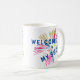 Diese Tasse zeichnet sich durch ein Design aus, das aus farbenfrohen Feuerwerkskörpern einen Text enthält. Sie können den Textinhalt und die Farbe sowie die Farbe des Feuerwerks an Ihren Anzug anpassen.