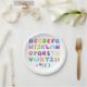 Lernen Sie das Alphabet mit Buchstaben, die blasen-förmig sind. Dieses Design wirkt auf diese Paper-Teller sehr effektiv