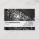 Eine Visitenkartenvorlage mit attraktivem Hintergrund für Fotos (die auch geändert werden kann). Details auf einem weißen Band. Firmendetails und Anschrift auf der Vorderseite mit Namen und anderen Kontaktdaten auf der Rückseite. Bereit für Ihre persönlichen Daten.