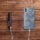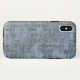 Diese digitalisierte Grafik, ist ein abstraktes Design, in einem gewebten, textilen Muster, in blauen, grauen und schwarzen Farben, die Denim ähneln.