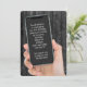 Handy in einer Hand auf dunkelgrauem rustikalem Holz für eine 75. Geburtstagsparty. Alle Texte können bearbeitet werden.