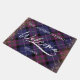 Stoffdiagonale Textur und Goldfolie Herzlich willkommen Ein tolles Geschenk für Neuvermählte oder neue Hausbesitzer. Diese klassische lila, navy, rosa und schwarz, texturierte, nahtlose diagonale Begrüßungstürmatte zeigt "Willkommen" in der modernen Schrift mit dem Namen und dem Jahr darunter. Eine breite Grenze vervollständigt das Design.