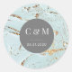 schöne strukturierte Imitate blaue goldene Folie mit modernem Monogramm auf einem grauen Rechteckhalter für Ihre moderne Hochzeit.