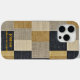 Steigern Sie Ihren Stil mit diesem geometrischen Patchwork-Handy-Gehäuse, das ein ausgeklügeltes Zusammenspiel texturierter Muster in Schwarz, Gold und Beige bietet. Dieses elegante und moderne Handy verbindet saubere Linien und erdige Farbtöne zu einer zeitlosen Ästhetik. Ideal für jeden, der nach schlichter Eleganz mit modernem Geschmack sucht.