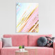 Pink and blue textured background, painted with large brush strokes, decorated with gold foil. Grunge Textur.