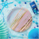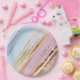 Pink and blue textured background, painted with large brush strokes, decorated with gold foil. Grunge Textur.