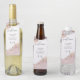 texturierte Rose Gold Imitate verdecken elegante Begrüßungsflaschen mit einer Kombination aus Drehbuch und Serif Schriftart für ein Jahr Hochzeit. Karo in unserem Shop für weitere Artikel für eine komplette Hochzeitssuite.
